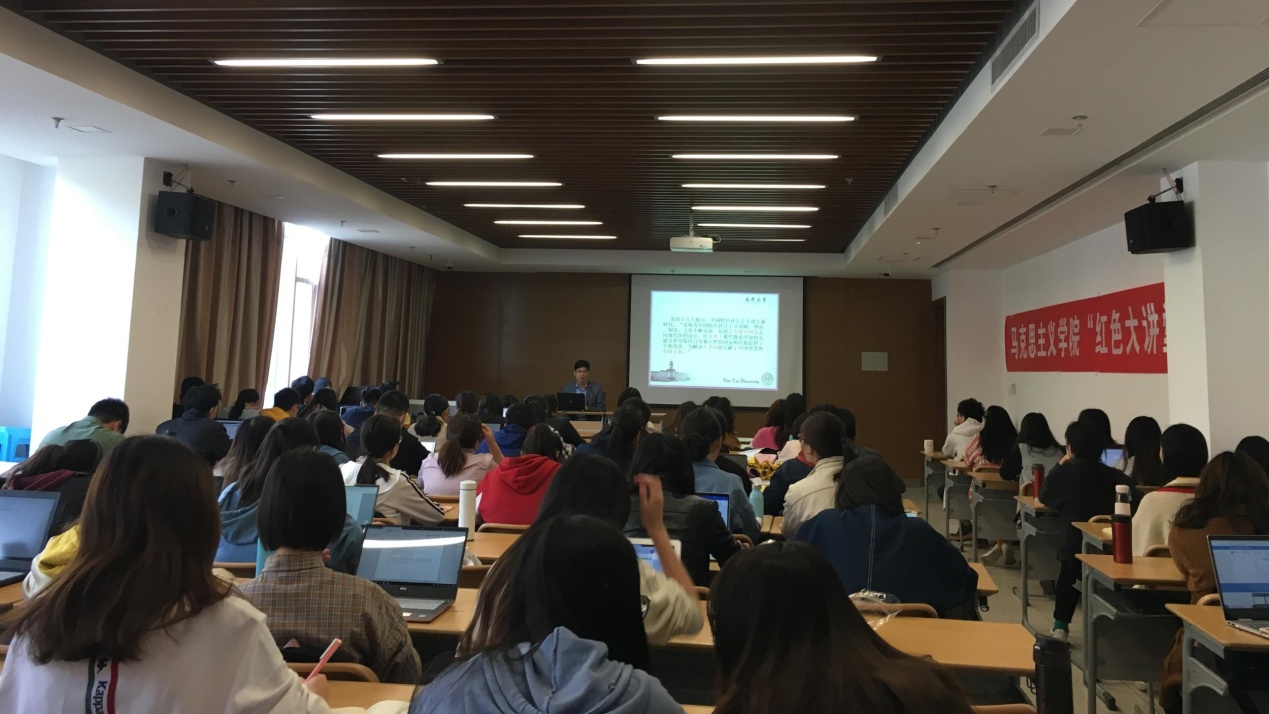 为深入学习贯彻习近平总书记视察南开大学重要讲话精神,4月18日,马克思主义学院“形势与政策”课第三讲暨“红色大讲堂”第二讲如期举行。马克思主义学院副院长、中心学者刘凤义教授做题为“推动世界经济的中国方案”的主题报告。学院全体本科生以及党员、入党积极分子参加了此次专题课程的学习。