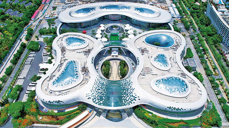 2025年11月6日,习近平总书记在海南省三亚市听取海南自由贸易港建设工作汇报时强调,“建设海南自由贸易港的战略目标,就是要把海南自由贸易港打造成为引领我国新时代对外开放的重要门户”。近年来,海南自贸港建设取得重要进展,封关运作准备、制度创新、产业升级等多项工作稳步推进。更加优惠的货物“零关税”政策,更加宽松的贸易管理办法,更加便利的通行措施,更加高效精准的监管模式,让海南自贸港的新动能、新优势、新活力持续涌现。图为2025年5月29日拍摄的三亚国际免税城。新华社记者 杨冠宇/摄