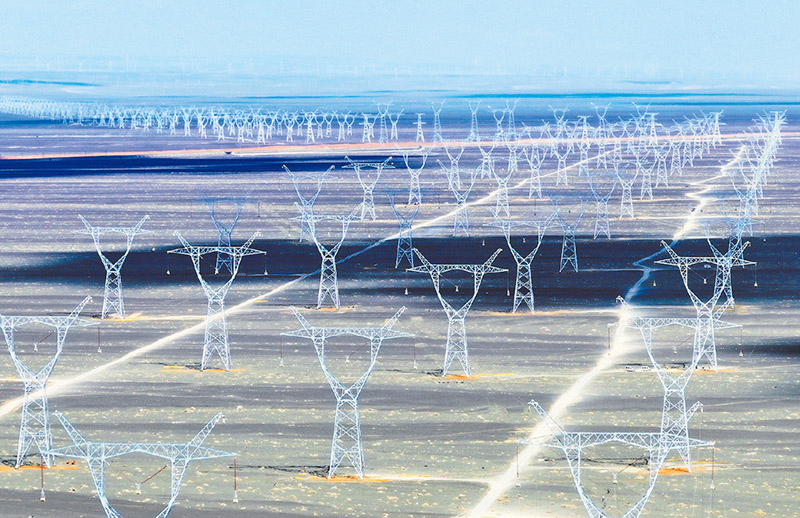 以重大工程项目为抓手,充分发挥政府投资带动作用,是有效调动全社会投资积极性、稳定经济的重要途径。图为2025年4月24日在新疆哈密市三塘湖镇附近拍摄的“疆电入渝”特高压工程。“疆电入渝”工程为国家“十四五”重大工程,起于新疆哈密巴里坤换流站,终于重庆渝北换流站,途经新疆、甘肃、陕西、四川、重庆五个省区市,线路全长2290千米。 新华社记者 王菲/摄
